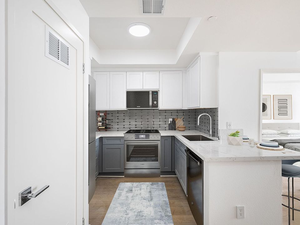 Enjoy the convenience of an in-unit washer/dryer, a stylish chef's kitchen, new flooring throughout, and your own private outdoor space.