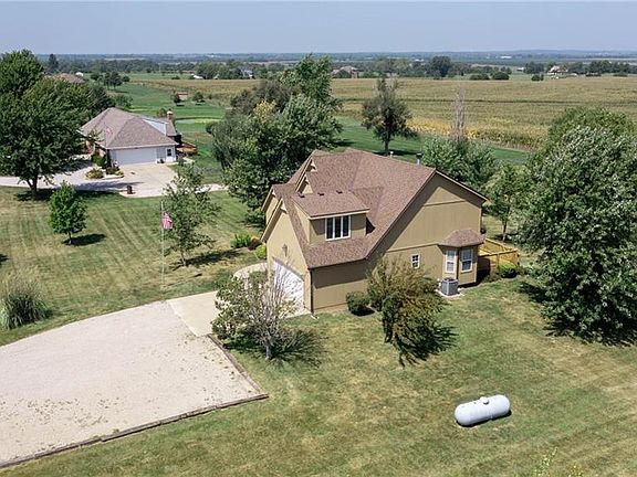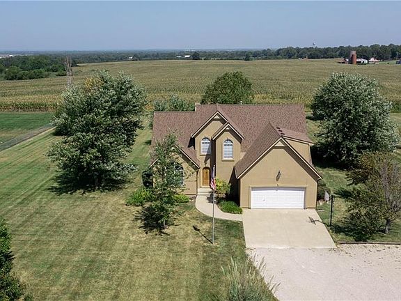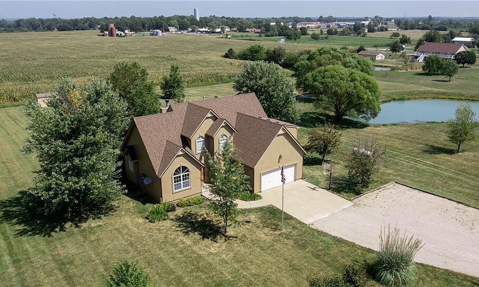 Well Groomed 1 1/2 Story home on acreage just outside city limits of Holden.... What a find for someone - this could be yours!! Seller just repainted exterior August/23, restained deck, and new roof/gutters approx 2 years ago. Large living room has vaulted ceiling and gas fireplace. Kitchen has good workspace with center island and good cabinet space. All Kitchen appliances stay. Breakfast room off kitchen and a formal dining room. Master suite is on main floor. Master bathroom has dbl vanities, tub and walk in shower and big walk in closet. Upstairs has 2 bdrms, hall bath and large office. Full basement could easily be finished if needed added space. Enjoy the outdoors on this dbl lot of 1.99 acres each for total of 3.98 acres with stocked pond and small storage shed. Buyer encouraged to take own measurements.