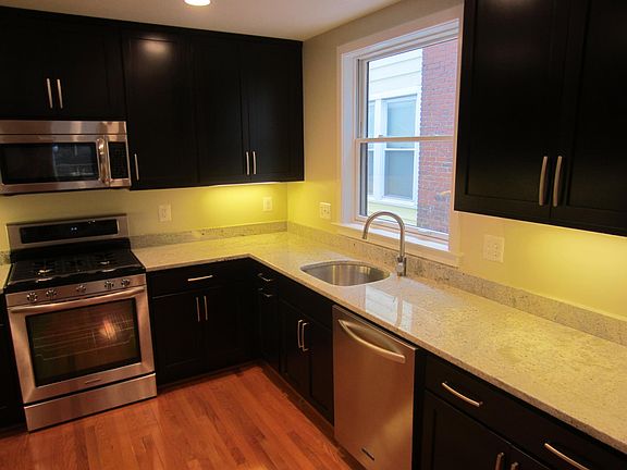 - Two entrances, including private side entrance - Ground floor (not below ground) - Large off-street parking space available for $150 - New construction, energy efficient appliances, great insulation (low utility bills), dual flush toilets - Central air (electric) and heating (gas) - Large in-unit washer and dryer - Built-in iPod dock and speaker system - Gas cooking, granite countertops, stainless steel appliances - Solid oak hardwood floors throughout - Quiet, tree-lined street - 8 units in condo association, most others are owner-occupied, everyone very friendly Owner pays water and trash, Tenant pays gas and electric