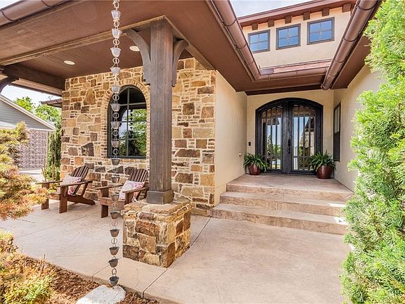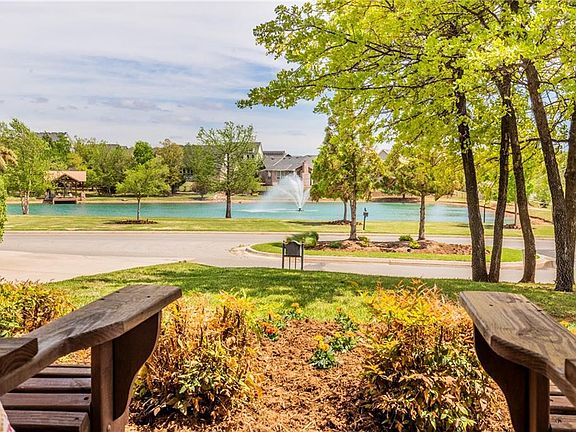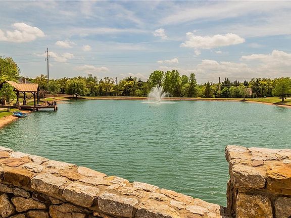 This historic style home by McCaleb Homes has water views! Wood Floors in all Living and Bedrooms. The Living: Vaulted Ceilings W/Wood Beams, a Fireplace & a Built-in Entertainment Center. Kitchen: Double Islands W/Storage on both sides. Breakfast Dining: Bench Seating & a Built-in China Cabinet. Formal Dining: Crown Molding & Antique Refurbished Sconces Reclaimed from an Historic OK Home. Study: Stained Wainscoting, & a Built-in Desk & Hutch W/French Doors. All Bedrooms have Walk-in closets. $8k in Custom Shutters/Blinds/Shades throughout, over $12k in Mature Landscaping, Full Gutters, Storm Shelter, Surround Sound inside & out, Full Privacy Fence & Hanging Racks for Storage in Garage with included. Built in Tesla Charger!! Buyer can OPT-in for The New Resort Style Residence Club W/Fitness Center, Studio, Indoor and Outdoor Kitchen & Living Spaces, Infinity Pool, & Rec Center for addtl $500 per yr.