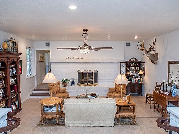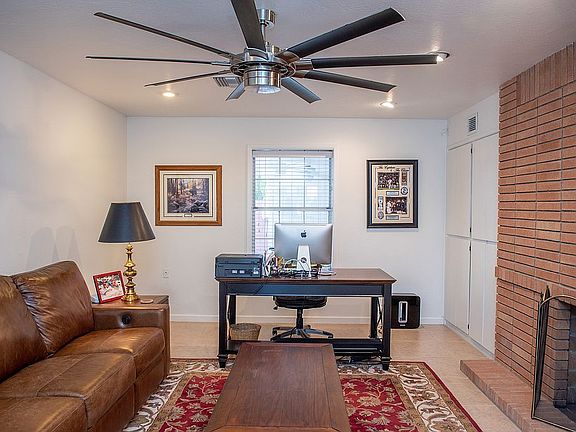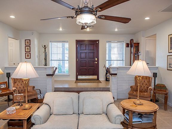 Recently updated with stone counter tops & stainless appliances & an open kitchen layout. The kitchen & dining area is a great entertaining space with a half bath nearby for guests. 3 bedrooms & other 2 baths separate from the office/den area. Dual fireplace in the living room & office. Custom ramada in the backyard which will be perfect for fall & spring outdoor dining. Solar panels system is paid in full, no lease or extra payments!