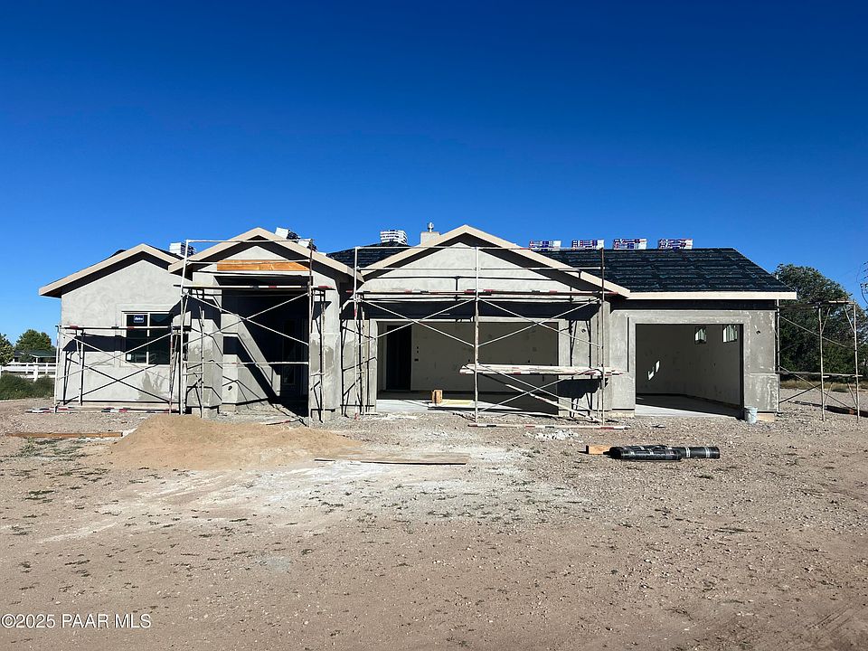 Welcome to your dream home in the highly desirable Mollie Rae subdivision, offering breathtaking views of Granite Mountain and a serene, picturesque setting. This 3-bedroom, 2-bathroom home boasts 2,319 sq. ft. of thoughtfully designed living space on a spacious 1-acre lot with privacy and charm.The neighborhood is adorned with white vinyl fencing, enhancing its timeless appeal. This property features a 3-car garage, plans for a separate RV garage, and epoxy-coated floors with built-in cabinets, ensuring ample storage and convenience.Inside, enjoy an open floor plan with tile flooring throughout the living areas and plush carpeting in the bedrooms. The chef's kitchen includes a large island with granite countertops, stainless steel appliances, and plenty of space for entertaining. The large master suite offers a luxurious walk-in shower, dual vanities, and a spacious walk-in closet.Outside, the fully landscaped yard is perfect for outdoor gatherings or quiet evenings enjoying the stunning Granite Mountain views. The private, set-back lot offers peace and tranquility, while still being close to Prescott's many amenities. Don't miss the chance to personalize this beautiful home and make it your own!