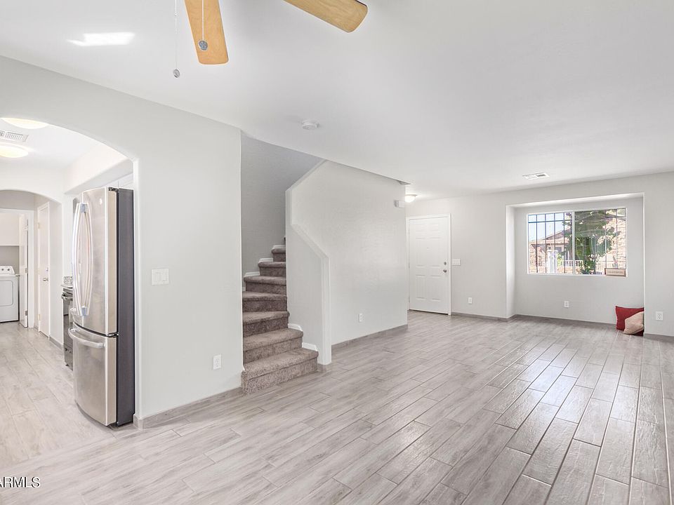 Low maintenance front yard, and the back yard is a clean ''blank slate'' ready for your decorating. ideas. This home has a North/south exposure, all block wall, and its located on the outside of the community, there is nobody ever living behind you! Great Freeway access, walking distance to the schools and shopping! NO HOA!!