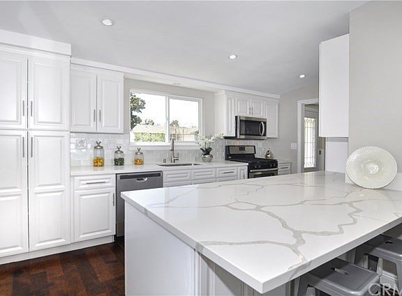 Incredible opportunity awaits the most discerning buyer looking for a stunning single story home in prime West Anaheim location and close to the Garden Walk, Downtown Disney, and The Anaheim Packing District. This gorgeous home has been completely remodeled from top to bottom with designer touches and beautiful materials. As you approach the front of the home you will notice all new siding, exterior paint, windows and glass door. Step in & walk into the highly upgraded kitchen with new white cabinets, beautiful quartz counter tops & shimmering glass back-splash and brand new SS appliances; now set your eyes on the stunning peninsula - perfect for family gatherings & entertaining. Adjacent is the dining room & living room with new floors, baseboards, light fixtures & recessed lights. This incredible floor plan provides much flexibility for big families. The main house is 1,731 sq.ft, 4 bedrooms (one currently being used as office with fireplace) 2 bathrooms highly upgraded with new floors, new vanities, quartz counter tops & gorgeous tub/showers. There is central AC - heating as well as new insulation to the 2 front bedrooms. The back has 369 sq.ft. with 1 big room and a bonus room/office and is attached to the garage. Could be perfect for a granny house, guesthouse or home office. Nice and spacious backyard to entertain, new automated sprinkler system for both front and back. Just the perfect home at the perfect price waiting for the perfect buyer to make it
