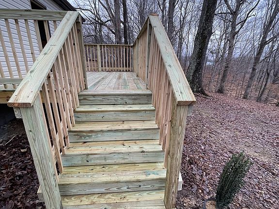 Priced to sell!! 1,435 sqft and 5 new surveyed acres in the heart of small town heaven of Centerville! Beautiful valley type view on top of hill. Brand new 16’ back deck w/wooded valley views. Access ramp and bathroom is ADA compliant. Large parking lot to store equipment/storage with electricity. Currently has a 40' high cube steel container that does not convey w/property, carport does convey. New PEX updated plumbing throughout. (Seller will pay up to $5,000 of Buyer's closing cost or rate buy down. Needs TLC
