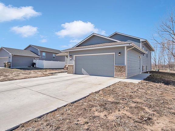 This beautiful home located in Hesston is practically a new home. It was built less than 5 years ago and the owner selected tasteful decor and finishes that you are going to love! Special assessments are almost paid off, and it is located in a quiet neighborhood just on the outskirts of Hesston. You will find it an easy commute to any location due to I-135 being nearby. There is also a bus stop for the kiddos that takes them to Hesson schools. Utility rates are fair here so you don't need to worry about extremely high bills. The Westover development is unique in that there is no HOA! You're going to love the split level floor plan! You have a covered front porch facing East, and as you enter you will notice the open floor plan. All kitchen appliances are only a year old and they all stay with the property. The luxury vinyl floor and paint colors are modern and clean. On the Main floor you have the kitchen, dining area, and a small gathering area if you'd like. There is also a half bath and a door leading to the back patio. Upstairs you have the large En-suite with a walk-in closet. You also have two additional good-sized bedrooms and a full bath in the hall. Down stairs you have a family/game room, another huge bedroom, storage and the laundry area. There is also a bathroom plumbed and ready to be finished in the home, allowing the new owner the opportunity to increase the property value once finished. This home is move-in ready and the seller can accommodate a quick closing. Don't miss out on this gorgeous home!
