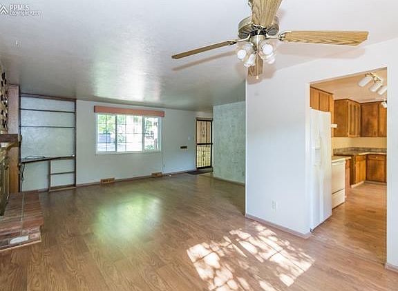 This updated home offers comfort, convenience & location. Nestled away in the lovely Westmoor Park neighborhood, walking distance to Garden of The Gods & Rock Ledge Ranch, easy access to shopping, entertainment, & main roads! The covered front entry opens to the great rm w/laminate wood flrs that flow throughout the entire main lvl. The great rm boasts wood burning FP surrounded by brick wall w/custom built-ins, & large picture window letting the natural light pour in. Newer energy efficient vinyl windows throughout.