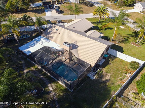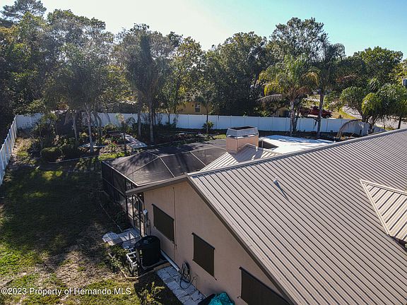 Split-plan, POOL home (salt/heated), a Fieldstone , in a garden-like, private setting. Security system, 6' vinyl enclosed back yard with three access gates. Eat-in nook, deep custom cabinets and built-ins, additional drawer shelving and a large pantry. The over-sized garage, along with two shed for your equipment. Mature oaks and palm trees, natural vegetation and pollinator-friendly landscaping, with (optional) raised beds and organic bins for growing your own! Extend your living space to the 55' x 22' screened and covered lanai while enjoying your stone fire pit. LOVE privacy and comfort? This could be your home! METAL ROOF (2018), HVAC with the remainder of the 10-year parts and labor warranty (2019), generator-ready connection, hot water heater (2020), extra insulation (2020), pool resurfaced (2016). Salt cell (2023). Transferable SELECT Home Warranty. Painted inside and out. (2018) Public water AND a well for irrigation and septic (pumped 2018). Gnat-free screens (2018) - lanai and garage screens. No HOA! What are we missing? JUST YOU. Make your appointment with your favorite agent today. .