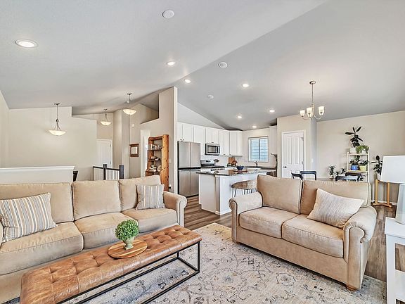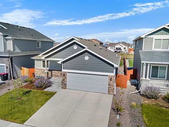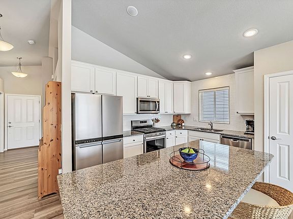 This stunning 4-bedroom, 3-bathroom ranch-style home offers the perfect blend of modern elegance and charm, with 2,544 square feet of thoughtfully designed living space. This home is a true retreat, nestled in the heart of the coveted Rolling Hills Community of Meridian Ranch, where spacious lots create both privacy and community. Step inside to be welcomed by vaulted ceilings that create an airy, open feel, seamlessly connecting the living, dining, and kitchen areas in a sun soaked open-concept design. The kitchen offers bright white cabinets and beautiful granite counters with a large island and breakfast bar which are complemented by stainless steel appliances. Whether hosting gatherings or enjoying quiet evenings at home, the warmth of this space invites connection and comfort. The primary suite is a sanctuary of its own, featuring a luxurious 5-piece bath and large walk-in closet, perfect for unwinding after a long day. A second bedroom or home office is partnered with a full bath and the main level laundry makes every day living a breeze. Downstairs, the spacious rec room in the finished basement offers endless possibilitiesmovie nights, game days, or the ultimate home playroom is accompanied by 2 more generously sized bedrooms, ample storage and a stunning 3rd bath. Outside, the manicured yard is set against the backdrop of a peaceful walking path. The oversized patio is an entertainer's dream, ready for summer BBQs, morning coffees, and evenings under the stars. Beyond the home, Meridian Ranch boasts fantastic community amenities, including pools, parks, restaurants, shopping, golf course and numerous trails, with a brand-new indoor sports field coming Fall 2025. If you're looking for more than just a houseif you're ready to find homethis is the one you've been waiting for. Come experience it for yourself! This is a non smoking no marijuana smoking/cultivating or growing home. Pets approved with additional deposit **No Cats**