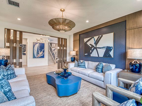 Modern Luxury in Apex at Avenir. 5 Bedroom 5 bath with Loft. This home has all the features you need including a luxurious 24''x24'' porcelain floor tile package in key areas including the foyer, living room, dining room, family room/great room, kitchen, family dining, and laundry room. Gourmet kitchen featuring upgraded cabinetry and sleek quartz countertops with a flat polished edge, complemented by a full backsplash. This culinary haven is equipped with a GE appliance package, including a gas cooktop, and boasts a spacious kitchen island with seating, making it perfect for both cooking and entertaining. The laundry room offers an upgraded cabinet package with quartz countertops, and a built-in laundry sink for added convenience. Additional highlights include a wood stair rail package, plush carpeting throughout the home in various colors (excluding tiled areas), and standard manufacturer warranties on all appliances, the air conditioning compressor, and the air handler unit. For modern security and connectivity, the home comes equipped with an in-home wireless alarm system, featuring wireless magnet contacts on all operable windows and doors (excluding exterior garage doors), along with a 7" touchpad and a secondary auxiliary touchpad. The garage includes 20 AMP dedicated receptacles for a future refrigerator, while a USB/C receptacle is conveniently located in both the kitchen and primary bedroom. An empty conduit from the electric panel to the garage is also in place for future EV charger installation. Exceptional Lifestyle and ideal proximity to all the best parts of Palm Beach County!