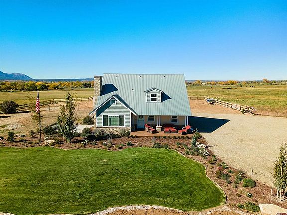 Welcome to this stunning modern farmhouse! Fully remodeled inside and out with a smooth flowing design. Downstairs you will find a cozy family room, gas fire place that offers beautiful mountain views from the large picture window! Open to the family room your family can enjoy the open and sunny kitchen and dining nook. A true gem to this home is the west side views from its’ lower level sunroom/ indoor laundry room, and private office. The enclosed sunroom keeps the farmhouse feel throughout. With plenty of room for the family, the main level includes two bedrooms and a full bathroom. Upstairs, a wonderful large master bedroom, 4 walk in closets, and a full bath with dual vanities. Upstairs, is another very large bedroom, with 2 large walk in closets, and a reading nook/daybed at the top of the stairs with breathtaking views of the expansive ranch, valley, and the Sleeping Ute Mountain! Behind the house a matching 12’x32’ large storage shed that provides a space to secure your property, and gives necessary protection from the weather. Around the home features new trees, beautiful perennial flowers, shrubs, is been planted with a low maintenance type grass lawn established in place! Also, deer and animal repellent ultrasonic devices help keep the landscaping looking great! Ring camera system on front and back, camera on drive, and monitored alarm to protect your home while home and away. With 40+ irrigated acres, the new pressurized water equipment system has a pump house, 2 side rolls, and 6 pod lines with 30 M.V.I. water shares. Situated in the heart of the beautiful valley, the water supply is ample, more than enough to provide the opportunity for production agriculture, as this valley is one of the premier homes of hay and alfalfa production farms, and for grass fed cattle ranching. There is a large pond to support their needs after the irrigation season, and the seasonal water fowl migration. This area offers an abundance of outdoor recreation, hunting, fishing, camping, hiking and biking including Phil’s World Mountain biking Trails! The home is minutes from the friendly city of Cortez, which has shopping, dining, lodging, golfing, and numerous parks, which one has a large recreation center for community and recreational activities. It is 10 minutes to launch into Lake McPhee which is the states second largest reservoir fed by The Dolores River. All nearby, include Mesa Verde National Park (famous for their ancient archeological ruins), Durango, and the world famous Telluride Ski Resort! This home and ranch can be split into multiple properties for development, or a sought after business opportunity as a vacation rental! Whether it's a cup of coffee on the deck watching the sunrise working in the office as the sunsets this home is 360 degrees of breathtaking views.