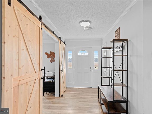 Set on a picturesque one-acre homesite, this thoughtfully renovated modern farmhouse strikes the perfect balance between timeless charm and modern comfort. Tucked back from the road on a peaceful, bucolic lot, the home feels like a private retreat. A welcoming covered front porch, ideal for slow mornings with coffee or unwinding at the end of the day, sets the tone, while the standing-seam metal roof adds classic farmhouse character. Inside, a generous entryway opens to a spacious and inviting family room designed to adapt to a variety of lifestyles. Whether hosting friends, relaxing with family, or creating space for a home office, game table, or favorite hobby, this flexible room offers the space for multiple uses. Newly installed barn doors allow the space to be closed off when desired, adding warmth, character, and just the right touch of rustic charm. At the heart of the home is a bright, modern kitchen that’s designed for modern living. Granite countertops, stainless steel appliances, recessed lighting, and a breakfast bar create a space that’s as functional as it is inviting. The kitchen opens seamlessly to an oversized dining area, perfect for everyday family meals and memorable holiday gatherings. Natural light fills the home throughout the day, highlighting crown molding, ceiling fans, and durable luxury vinyl plank flooring throughout the common areas, clean lines and thoughtful finishes that define modern farmhouse living. The main-level primary suite offers a cozy and private retreat, complete with an ensuite bath featuring a large walk-in shower with newly installed glass doors. Two additional sun-filled bedrooms share a full hall bath, while a convenient main-level laundry and utility room adds ease to everyday living. Outside, the setting truly completes the experience. A side-entry privacy fence creates the perfect space for pets, gardening, or relaxed summer barbecues, while the expansive yard provides plenty of room to play, gather, or simply enjoy the open sky. A rear fire pit with seating invites evenings spent under the stars, and two sheds—12’ x 22’ and 10’ x 16’—offer ample space for storage, projects, or hobbies. A wide gravel driveway provides generous parking for family and guests. Renovated in 2020, the home includes major upgrades such as a new septic system and new HVAC, along with recent improvements including a new washer and dryer (2024), dishwasher (2025), a brand-new front entrance door (2025), and 18 Green Giant trees planted in 2024 to create a natural privacy screen. Warm, welcoming, and thoughtfully updated, this modern farmhouse offers room to breathe, space to gather, and the easy comfort of country living, an inviting place to slow down, settle in, and truly feel at home.