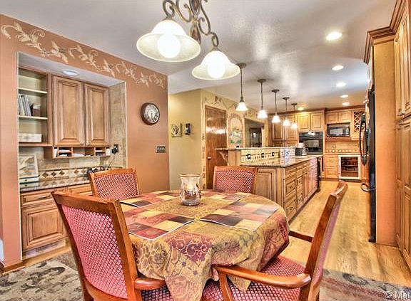 This home is exquisite in and out! New exterior paint, new side fences, a $20,000 paver patio with a portion of the patio covered, professional landscaping, front porch creating fabulous curb appeal. The kitchen has a $70,000 custom remodel, with cherry stained maple high-end cabinets, pull-out shelves, double ovens, wine refrigerator. Baths have a $30,000 custom remodel. Wood floors. Large family room with brick fireplace. Definite pride of ownership, perfectly maintained.