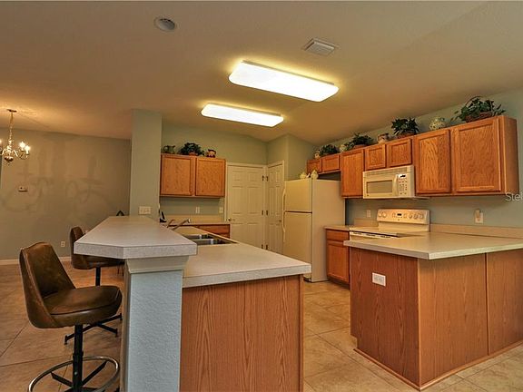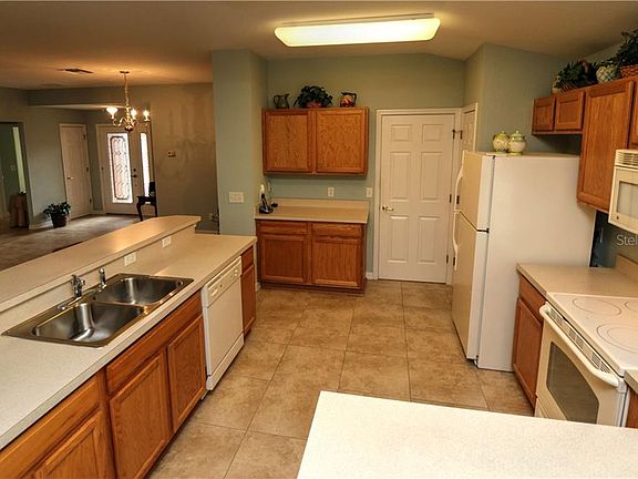 Private lot. Framed by beautiful trees; landscaping complete with hacienda walls and rock beds. Designer entry door with matching side window. House has ceramic tile. NO CARPETING. Kitchen features breakfast bar, pantry & nook. Formal dining. Inside laundry room with stackable washer/dryer combo. Enclosed lanai (acrylic windows) with stucco knee-wall; laminate flooring. Extending 2-car garage (20' x 25'); privacy screen, painted floor, pull-down attic storage and wire shelving. Waiting for a new owner.