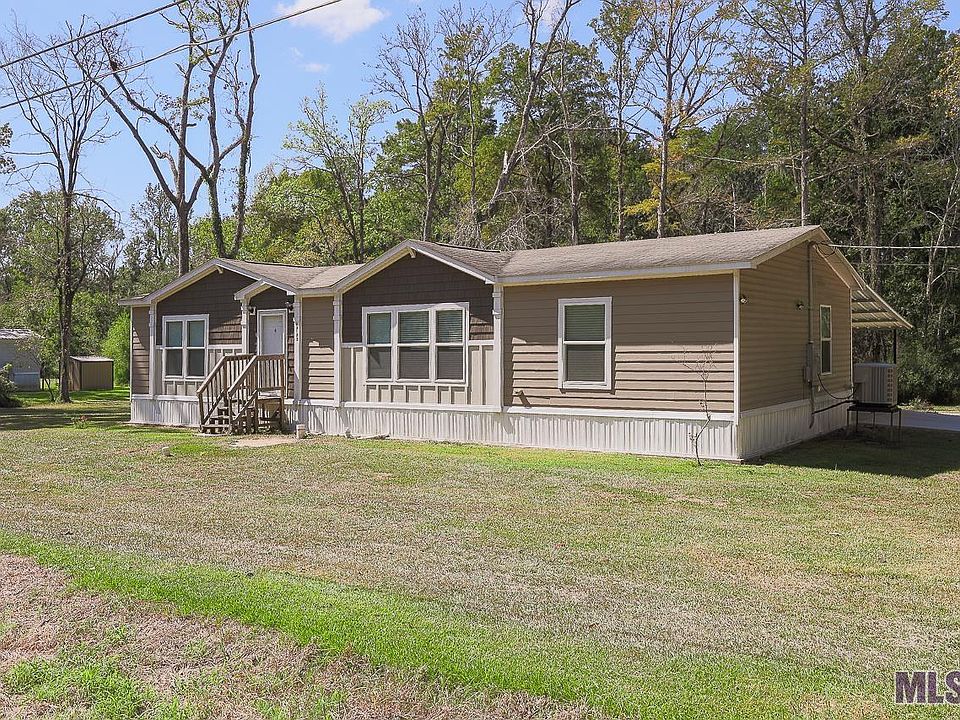 3 Bed, 2 Bath, 1,568 living sq ft double wide mobile home sitting on an ACRE down a dead-end road. Open floor plan great for entertaining! The living room features a beautiful built-in entertainment center with lots of natural lighting. The spacious kitchen has granite countertops, farmhouse sink, an island, and a pantry with a beautiful barn door. Fridge to REMAIN! Home also has a split floor plan. The primary bedroom has a walk-in closet and a beautiful en-suite bathroom with a double vanity, garden soaking tub, and separate shower. Spacious laundry room has shelving and a computer nook allowing you to work from home. Large covered carport and back patio with a metal roof overlooks the spacious backyard with beautiful mature trees for privacy. Home also has a small storage shed and satsuma tree. Conveniently located near Airline Highway, Walmart, Rouses, restaurants, and so much more! No HOA! 100% Financing Available! Perfect place to call home so schedule your showing today! Buyer changed their mind and never got to inspections. This is the only reason this opportunity is back on the market!