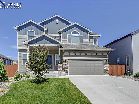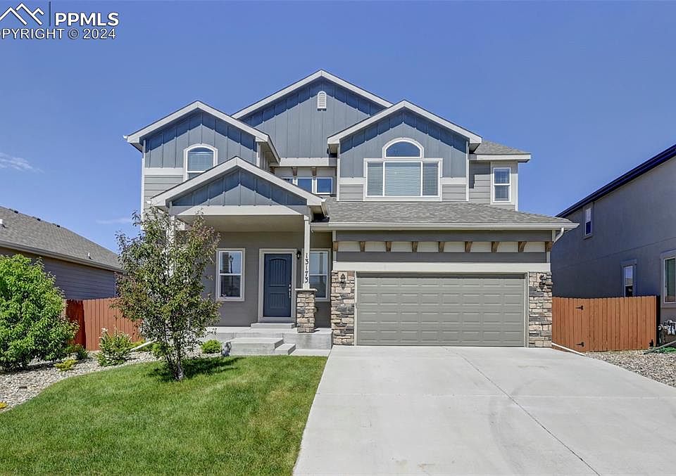 Welcome to this exceptional single-family home located in the vibrant and well-kept neighborhood of Meridian Ranch. This expansive 6-bedroom, 3.5-bathroom home spans 3,064 square feet, offering an abundance of space and comfort. Step inside to discover a home filled with modern elegance and thoughtful design. The heart of the home is the beautifully appointed kitchen, featuring dark cabinets, stunning granite countertops, and dark engineered wood floors that extend throughout the main living areas. The kitchen is bright and inviting, perfect for both everyday meals and entertaining guests. The home boasts a variety of living spaces, including a dining room, a living room, an office/flex room conveniently located by the front door, and a large recreational room in the fully finished basement. The master suite is a true retreat with its generous size, vaulted ceilings, and dual closets. The en-suite bathroom is equipped with a double vanity, a soaking tub, and a separate shower, providing a spa-like experience. The exterior of the property is wonderfully maintained, reflecting the care and pride of ownership. The good-sized backyard is perfect for outdoor activities and backs up to open space, providing a sense of privacy and tranquility. Enjoy easy access to nearby trails. The property also includes a spacious 3-car tandem garage, providing ample storage and parking. Located in a vibrant and well-maintained neighborhood, this home offers the convenience of nearby amenities, including schools within walking distance. A recreation center is nearby, with a new one to be built soon, and the property is just minutes from shopping centers and restaurants. This home offers excellent access to main roads and highways, providing a quick commute to military bases and other key destinations.