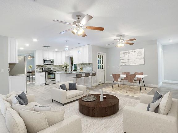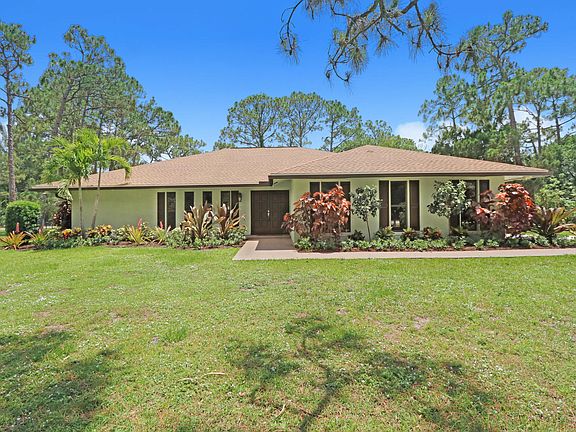 Stunning, FULLY RENOVATED & PRE-INSPECTED, 2,154 sqft light/bright 4 bed/ 2 bath one story CBS, 2 car garage home. Nestled on a HIGH and DRY 1.6 lush acre Corner LOT and only 2 turns off Indiantown Road and doors from paved road. You will immediately notice the detail and care the owner put into this renovation! Open kitchen with granite counter tops and bar space including a pass through to the patio. Open split floor plan with extra large master closet, upgraded bathrooms, spacious family room, crown molding, 100% waterproof warrantied vinyl flooring, & newer water heater. Experience the tranquility of this Jupiter Farms unique home from the expansive screened in porch that extends the entire width of the home.