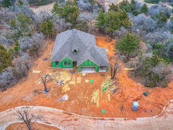 Beautiful wooded property on .87 (mol) acre lot in the gated Indian Ridge neighborhood. This home is under construction with a completion date set for the end of May. This 4 bedroom home has plenty of room for the entire family, and includes an additional room that would make a great home office or playroom. The large open living room, kitchen, and dining area gives you more than enough room for entertaining. Some of the features included are 10' ceilings throughout, crown molding in common areas, 36" wood burning fireplace, custom cabinetry, soft close cabinet doors in the kitchen, full extension glides on drawers, Whirlpool appliance package, quartz countertops throughout, post tension slab, sprinkler system, aerobic septic system, and many, many more features! This home is located in the Edmond school district, and a great place to call home on the quiet, wooded lot. Please read directions as GPS may not be correct. Taxes listed are for land only.