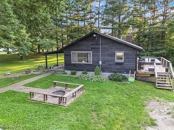 LOAN IS VA ASSUMABLE AT 2.25% UPON ELIGIBILITY THROUGH EQUITY RESOURCE! This ranch-style home situated on 2.68 acres within the Licking Valley Schools. The covered front porch leads you into the open-plan living and updated kitchen area, the heart of the home. The main level has 4 bedrooms and a full bath. The partially finished walkout basement that features a family room with a bar. Includes a recently updated full bath, walk-in shower. The basement also has unfinished spaces dedicated to laundry and storage. Step out into the backyard, you'll find a chicken coop equipped with 100-amp electric and water supply, ready for your feathered friends. The spacious grounds are perfect for setting up your barn and room for additional livestock.