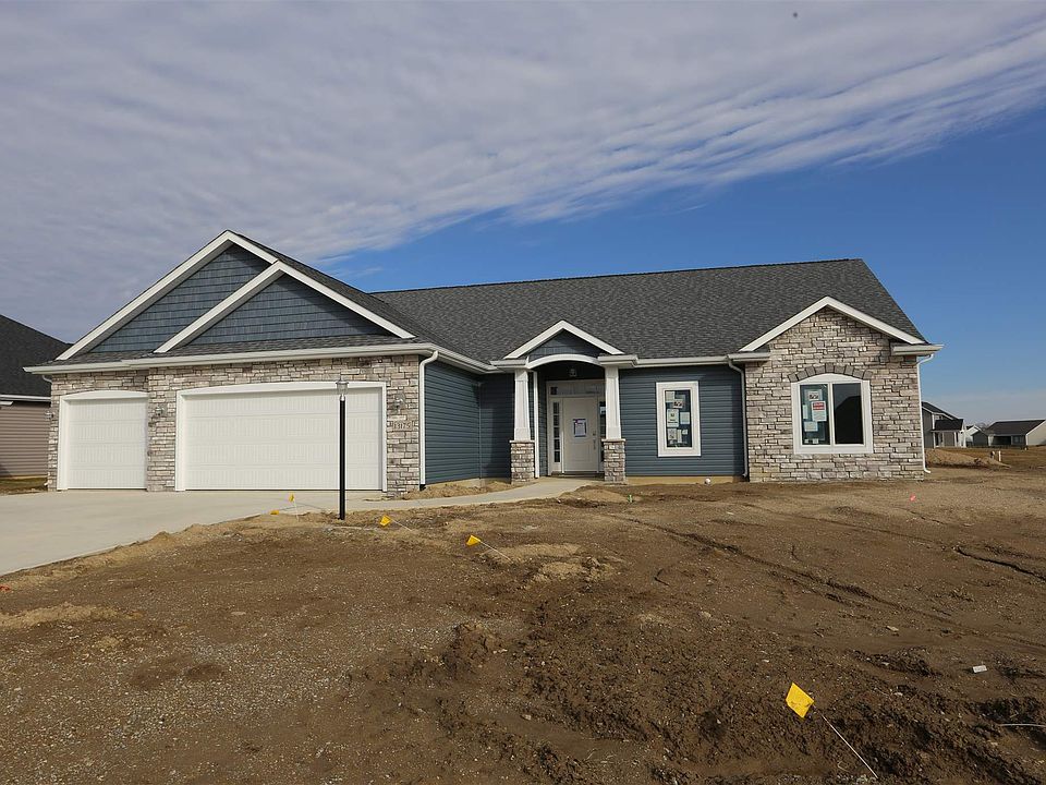 Just completed ranch home by Granite Ridge Builders. The open plan offers a custom kitchen with painted cabinetry, island with breakfast bar, granite countertops, tile backsplash, stainless steel gas range, dishwasher, microwave and a large walk-in pantry. The great room, nook and sunroom are a great open space and have large windows for plenty of natural light and overlook a beautiful pond. A rear covered veranda is a great place to relax or entertain while taking advantage of the view. The master suite has a private entry, tray ceiling with crown molding and lighting, two walk-in closets and spacious bathroom with a porcelain tile shower. Other amenities in this home are a laundry room with direct access to the master closet as well as a folding counter and cabinetry and 3-car garage with a utility tub, wider attic pull down stairway.