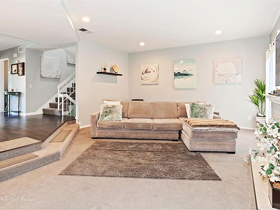 You WILL fall in love with this gorgeous private end unit townhouse in the private gated community of Meadow Brook Village. Huge Open Living Room with Fireplace that has Two Sliding Doors Leading to Balcony overlooking peaceful community creek. Large Open Kitchen with White Cabinets, Quartz Countertops, beautiful Stone Back Splash, Newer Stainless Steel Appliances and Recessed Lighting. There is also a separate Dining area with decorative lighted chandelier. Next to the Kitchen and Dining area is a Second Balcony that is large enough to fit an outdoor seating area or even table for outdoor eating. The Home features laminate wood floors, carpet or tile throughout. Downstairs also features a half bath for guests and a small study area. All bedrooms are upstairs and feature decorative lighting. Master Bedroom Suite has Vaulted Ceiling, Ceiling fan, Walk-in Closet, Full Bath with Dual Sink Vanity. All Bathrooms upstairs are Remodeled with Newer Vanity, Tub, Tile Flooring & Quartz Countertops. HOA Amenities Include a Pool, Spa, BBQ Area, two Tennis Courts, and a Clubhouse. HOA also covers for the Water (Hot & Cold), Trash, Exterior maintenance, creek maintenance, security gates and fire insurance.