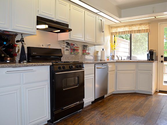 Welcome Home... You will fall in love with this gorgeous townhouse in the desirable gated community of Meadow Brook Village. Enjoy the spacious kitchen with granite countertops, wood floors, plenty of storage and a separate formal dining area. Dramatic vaulted ceilings enhance the large living room with cozy fireplace. Three large bedrooms with lots of natural light and Three Full Bathrooms that are beautifully tiled. The grand master bedroom has vaulted ceilings with en suite full bathroom, dual vanities and a walk-in closet. Dine outdoors on your private balcony or enjoy the tranquil sounds of the running stream from your front porch. Lots of storage in your large 2-Car Attached Garage. HOA Amenities Include a Swimming Pool, Spa, BBQ Area, two Lighted Tennis Courts, and a Clubhouse. HOA Pays for the Water (Hot and Cold), Trash, Exterior maintenance, exterior insurance, as well as all the amenities.
