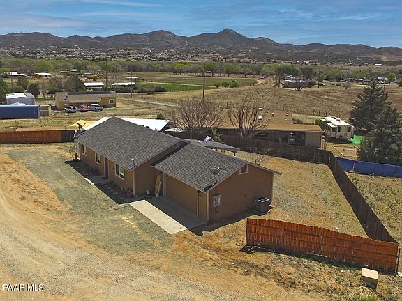 Location Location! Conveniently located near Mortimer's Farm in Dewey. This single level home offers plenty of Mountain views from the front of the home as well as the beautiful sunsets from the back covered patio. North/South facing. Fully fenced 1/4 acre for planting your own garden, family & pets. Inside the home boast 3 bdr. 2 bath baths, Corian counters and custom cabinets. Tile and Carpet in all the right places. New Heat pump 2021, New Water heater 2022. Attached oversized 2 car garage with ample RV parking on the property. Eat in kitchen/dining area off large great room for entertaining. NO HOA in well maintained area. Close to schools, shopping & 1hr & 15 min to Phoenix. Come escape the heat & enjoy some country living!