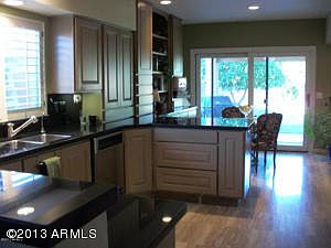 Extensively remodeled and updated home in 2000 & 2005, in beautiful Sweetwater Ranch Manor, fabulous kitchen with alder wood custom cabinetry, slab granite countertops, stainless appliances, Dacor convection oven, Private lot with extended patio, view fencing backs to desert belt with walking paths. Elegant master bedroom suite, master bath with travertine shower, dual heads, frameless glass door, marble countertops. Downstairs bath also remodeled with comparable finishes, extensive stone flooring, plantation shutters throughout, dual pane windows throughout, fresh designer paint. Closet custom organizers throughout. Garage with epoxy floor finish, built-in cabinets, pull-down ladder to attic storage. Soft water & water filtering system. Great neighborhood near restaurants, shops, etc....