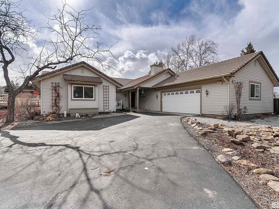 Almost one acre with stunning views of Mt. Rose. This single level ranch home is flooded with natural light. Enjoy the sunsets sitting on the Trex like deck overlooking the low maintenance yard. Homes in this neighborhood on this size lot rarely come on the market. Close to schools, skiing, golf, shopping, restaurants and 15 minutes to the airport. Interior features a free standing gas fireplace, vaulted ceilings, fresh interior paint and new carpet., RV access, oversized garage with cabinet storage. Hurry and be the least expensive in an area of high end homes.