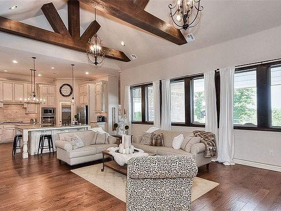 This stunning home in Choctaw/Nicoma Park Schools has it ALL! 3 bed*2.5 bath*study*3 car garage with wood floors and carpeted bedrooms. Huge windows show the beautiful views of the pool, hot tub, and greenbelt. Front porch boasts a very nice sized covered patio where you can relax and sip on sweet tea. Kitchen has stainless steel appliances*walk in pantry*2 huge islands that are perfect for entertaining. The breakfast nook has built in seating/storage. Beautiful chandeliers throughout accent the wood beams in living. Living boasts cathedral ceilings. Additional upgrades include surround sound, storm shelter, in ground sprinkler system,and a security system. Enjoy walking the trails in this family friendly neighborhood where you will see several ponds with waterfalls throughout. Not only does this neighborhood have a gorgeous entry, but has Midwest City utilities, police and fire. Minutes from Tinker, Downtown, and Boeing.