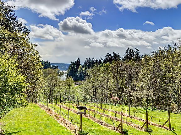 2240 sf 3 bd/2 ba + winery on 6 acres incl 2 1/2 acres of vines. Incl tasting room, events room seats 35+, bottling room, inventory & retail supplies. Beautiful property with view of Sound & Olalla Bay. Also paths to & open view of salmon run creek that crosses through edge of property. 5th generation vitner willing to mentor for up to a year + pre-booked events & business included. Huge untapped potential here. Call agent for full features, inventory lists, production capability, etc.