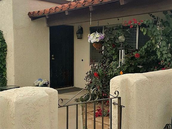 A must see! Mission style home with front courtyard patio with bougainvillea, red roses and morning glories. 3 bed, 2 bath, family and living room. Newer carpet, new paint and new blinds. Includes stainless steel appliances. Saultio spanish tile flooring, curved southwester fireplace. Large enclosed backyard with covered patio and hot tub hook up. Solar panels (leased) keep electric costs down. Two car garage, with wall to wall work bench and extra storage nook. Storage shed in back yard is included! Home is pending Short Sale approval, do not disturb tenant.