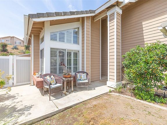Welcome to your dream home nestled in the desirable Horsethief Canyon Ranch community of Temescal Valley. This beautifully upgraded 4 bedroom, 2.5 bath home, with 3 car garage, offers the perfect blend of comfort, style and function. Step inside to soaring ceilings and an open, airy layout that includes the formal living and dining room. You'll love that throughout the home you'll find beautiful laminate and tile flooring, crown molding and window shutters. Head into the kitchen that was upgraded with espresso cabinets, granite countertops, sleek tile backsplash, pendant lighting, additional cabinets for storage and recessed lighting. The adjacent family room features a cozy fireplace to help on those colder evenings, built in surround sound for movie nights, ceiling fan and access to the garage and half bathroom that boasts a newer vanity and light fixture. You'll notice the laminate flooring continues upstairs where you'll find all 4 bedrooms feature ceiling fans, vaulted ceilings, and window shutters. Both the secondary hall bathroom and primary on-suite have updated vanities, upgraded countertops and light fixtures. Go back through the family room and step into your own private oasis. The beautifully landscaped backyard is vibrant with lush greenery and beautiful flowers. A sizable patio cover, with ceiling fan, is ideal for relaxing and ensures year-round enjoyment. Fruit trees (lemon, lime, nectarine, and pomegranate) add to both the beauty and the bounty, while a separate charming wooden trellis with passionfruit growing on it provides a picturesque setting for outdoor meals or gatherings. An automatic side gate opens up to convenient RV and boat access - perfect for outdoor enthusiasts or those needing extra parking. The backyard also has a large shed that allows ample storage space for tools and outdoor gear. This backyard truly has it all - space, privacy, and a serene atmosphere designed for both everyday living and memorable entertaining. Horsethief Canyon features award winning Luiseno School (K-8th), community pools, spas, clubhouse, gym, tennis courts, soccer fields, parks, baseball fields and much, much more. LOW HOA, LOW TAXES and close access to the 15 freeway makes this a home you won't want to miss!!!