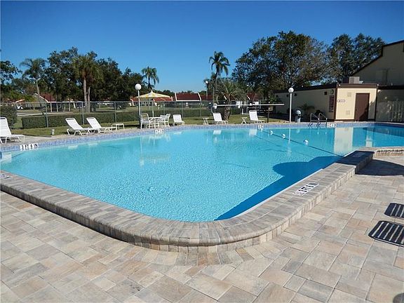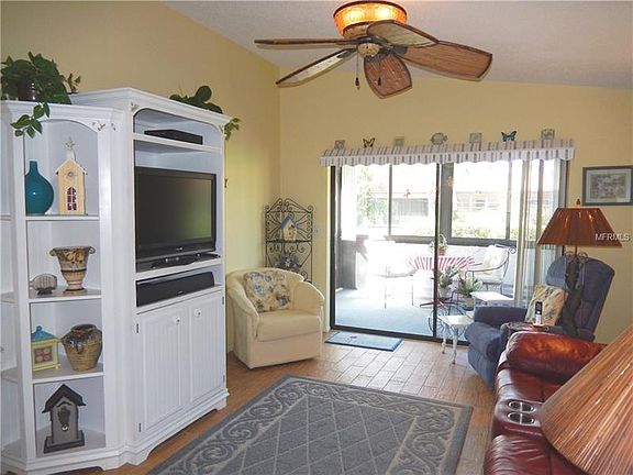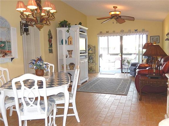 Whether you are dreaming of having your own Florida getaway or living in paradise year-round, this 1/bedroom 1/bathroom villa-style condominium in the desirable Meadowcroft North 55+ community, can be yours. Enter into your combination great room/dining room. The vaulted ceiling with new light fixture and ceiling fan-makes your home feel spacious and bright. The sliding glass doors lead to an enclosed patio, perfect for relaxing. The kitchen has and abundance of space, custom designed cabinetry with corian countertops, glass tiled backsplash, a breakfast bar, and laundry closet with a stackable washer/dryer included. The main bedroom has a wall-to-wall closet and the bathroom has a brand new marble top vanity with a beautifully detailed carved wooden base. There is an additional storage closet right outside the front door for even more space. Meadowcroft is maintenance-free living with on-site management, low monthly fees, and a calendar full of social events. One pet up to 25 lbs. is welcome. Enjoy the renovated heated pool, sauna, lakefront clubhouse with fishing pier, billiard and card rooms, tennis and shuffleboard courts, and fitness equipment. Close to the beautiful gulf coast beaches, GT Bray and Robinson's Preserve Parks, hospitals/medical facilities, restaurants, shopping, and cultural events. Make care-free living in paradise your reality today!