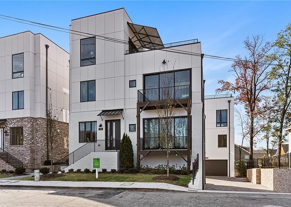The Palmer by Brock Built at West Town. Photos of Actual Home!!! In the heart of Midtown you will find this last home remaining. The upper floor has an outdoor living area w/ amazing views of the Atlanta Skyline making for an incredible spot to hosts guests. Relax in your oversized owner’s suite with spa style bath. Walk to top golf, star provisions, & several breweries. Jump on the belt line, steps away. This home is fitted with top of the line stainless steel Kitchen-Aid appliances, hardwood floors, & quartz counter-tops. Plus a Bonus room. Move-In Ready Now!!! This is the **LAST ROOFTOP HOME REMAINING** at West Town. Open floorplan with direct view from the Kitchen to the Family Room. Kitchen includes KitchenAid Stainless Steel built-in cooktop, dish washer, and wall oven. Quartz counter top with seating for 3. Soft Close Cabinets and Drawers with a trash bin pullout. A roommate style floor plan; secondary bedroom w/spacious en suite provides extra privacy. Living Room, Master, and Rooftop Terrace all have a Western Window that opens to the last pane. Washer and Dryer included. Hardwood flooring throughout. 10ft ceilings and Tall Casement Windows. Lower level Bonus Room would be perfect as a media room or office. Large storage closet. 4th level Rooftop has included wet bar with KitchenAid Beverage Center and Full Bath. Shared drive-way with 2-Car Garage Underneath with additional driveway and street parking. Fenced private front yard with gate. Beautiful views of the Atlanta Skyline. A definite Must See!!!