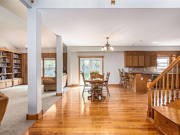 Space galore! Large main level with a open kitchen-dining-living room and library. Ton of cabinets, breakfast and ample storage space. Gorgeous hardwood floors on main level. Huge primary suite with two additional bedrooms on the second level. Full finished basement/Owens Corning System. Bar and full bathroom in the basement. Newer Carpet, new HVAC in 2020, Roof 6 yrs old, lush manicured lawn w/wood fence. Corner lot across from city park. One owner home. Well cared for.