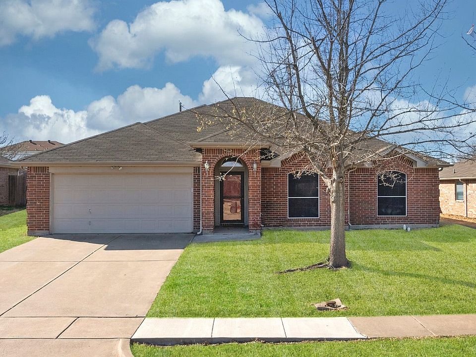 Great Investment Opportunity. This 4 bedroom, 2 bath home is perfect and conveniently located in a quiet neighborhood. As you enter the home you will immediately notice the wide open floorpan that has room for entertaining and a custom faux brick wall that creates an amazing backdrop. The nice large eat in kitchen has so much room, and island and breakfast bar and is open to the den area with a wood burning fireplace. Imagine yourself having family and friends over and gathering in the kitchen and den.The split bedroom floorpan makes it nice as the owners suite is separate from the other bedrooms. The backyard features a covered patio and is spacious.