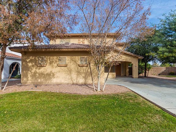 Charming home in Gilbert! Great open floor plan, arched doorways and high ceilings make this home a must see. This home boasts eat in kitchen with light beautiful upgraded 42'' maple cabinetry, stainless steel appliances, island and ample space! Master ensuite has double vanities, separate tub & shower and a spacious walk-in closet. Large laundry room with sink, cabinets & counter space is always a plus! Options for dining make entertaining easy! First floor bedroom & bonus room add to the flexibility of this fantastic floor plan. A multitude of windows create that great natural lighting in this home. Enjoy evening meals under the covered patios with resort style pebble tech pool. Backyard is grassy and conveys tranquility. Put this one on your list to see today! Great community amenities