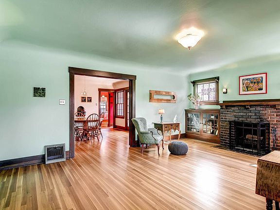 Classic Design, Modern Appeal! Charming 3 bedroom, 1 bath home with hardwood floors. Spacious living room with lots of natural light and large windows. The wood-burning fireplace is flanked by built-in glass-fronted shelves. Updated kitchen has Stainless Steel Appliances (Bosch dishwasher, LG Gas Cooktop, LG Refrigerator), subway tile backsplash, and eat-in option. Separate formal dining room with French doors and walkout to side patio/yard area. Bathroom has been totally remodeled with new tile floors, tile halfway up the wall, glass shower door, and stand-alone granite counter. Bedroom closets all have windows to allow for natural light and fresh air. Picture rail in bedrooms. Original wood trim and base moulding throughout the home. Full unfinished basement is ready and waiting for your finishing touches, and offers great, clean storage. Additional 13x10 'room' and a utility sink. Plenty of space in the yard; garden beds, storage shed and perennials. High efficiency furnace and water heater installed in 2012. Stucco exterior, with fresh paint in Fall 2015. Radon System already installed.