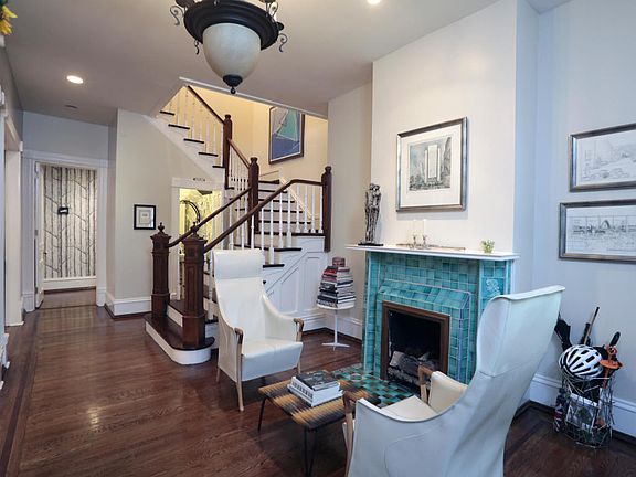 This hard to find 3 BR, 2.5 bath condo full of New York design and style offers in-unit 2nd fl laundry, garage parking, and 2 private outdoor entertaining spaces. In addition to the 1 car garage, there are also 2 assigned parking spots for this unit. The front porch and private courtyard are assigned solely to unit 1. You'll appreciate the 9 foot ceilings, hardwood floors, and the 4 working gas fireplaces in this unit. Entering from the front, there is a large foyer and a gorgeous stairwell. The powder room is remodeled & has mod Cole and Sons wallpaper, a new sink, toilet, and fixtures. The formal living and dining rooms are large spaces, & the media cabinetry can be left with a strong offer. The kitchen is well-updated