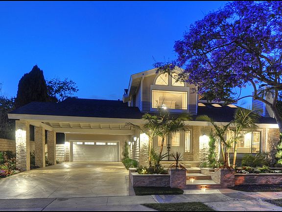 Dover Shores one of a kind custom remodel. Chic, modern & up to date! 3,192 sq.ft. 4 Bedroom, 4 Bath, offering a beautiful design of simple elegance. Newly landscaped grounds offer an outstanding street presence with stack stone planters & siding, paved walkway, colorful foliage & a wonderful ambiance with well-placed lighting & window display. Double doors open to a bright foyer, leading to ¾ bath & living areas featuring light wood plank flooring, sky lights, wood accents, neutral pallet & complimenting light fixtures throughout. French doored dining sits between the living room & kitchen with matching SS Thermador professional appliances, large island with seating & an abundance of crisp white cabinetry covered with gorgeous Quartzite counter tops. The flow continues into breakfast nook & spacious family room with surround sound & large stone hearth, then out to the back yard for seamless entertaining. Carpeted upper level features laundry room & 3 secondary bedrooms (1 with bathroom) The spacious master suite offers vaulted ceilings, large walk-in closet, 2nd closet & beautiful bath with spa tub, double vanity & glass enclosed shower. The side drive offers covered parking & direct access double garage with epoxy flooring, built-ins & back yard access.