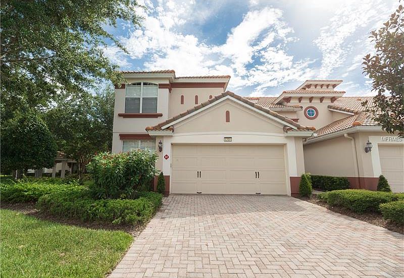 Popular Mirella Floor plan with the first floor master bedroom. This home has been in the same ownership from new and used as the families vacation home. Came and enjoy the sound of the fountain and the water view to the rear whilst you can sit on your screened and tiled lanai and take in the Florida sunshine. Located in upscale Champions Gate, Bella Trae is a gated community with a recently remodeled private clubhouse featuring heated pool and spa, well equipped fitness room, snooker room and social meeting rooms. The HOA fees include, basic cable, internet and pest control, building maintenance and much more. This is maintenance free living at it best in a community that does not allow Short Term Rentals. The home feature granite counters, 42" solid wood cabinets and stainless steel appliances in the kitchen. The first floor master bedroom enjoys the same water view as the great room. Your master bathroom has upgraded tile, soaking tub and separate shower. The large walk-in closet finishes of the Master Suite. to the first floor are 2 good size bedrooms family room and bonus room. This is maintenance free living at its best. Champions Gate has a variety of restaurants to chose from including Davids Club, Tervi's and Zen at the Omni Hotel and as a Bella Trae Resident you will enjoy a 10% discount of food and drink at the Omni. Located less than a mile from exit 58 of I4 the location is perfect for access to the parks and attractions in Orlando.