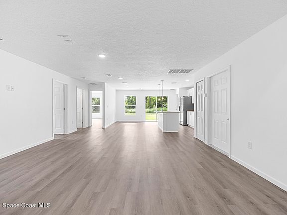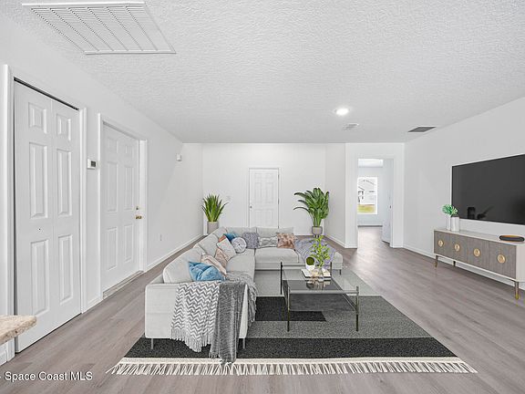 Built in 2021, this 4-bedroom, 2-bathroom residence offers 1,766 sq ft of modern living. The home features impact windows, new LVP flooring, a walk-in closet in the primary bedroom, and updated bath light fixtures. Enjoy energy-efficient insulation and windows, white kitchen and bath cabinets, stainless steel appliances, granite kitchen counters, a kitchen island with a sink, and a pantry. Hydrogen peroxide well water injection system. The property includes a covered back porch and a 2-car garage. With concrete construction, a new roof, professional cleaning, and recent pest service, this home is move-in ready. Save on insurance with newer construction without the wait for new construction. This home is ready for your personalization. No HOA restrictions provide freedom, and the location close to Palm Bay Road ensures convenient access to shopping, dining, and entertainment. Don't miss out on this perfect family home