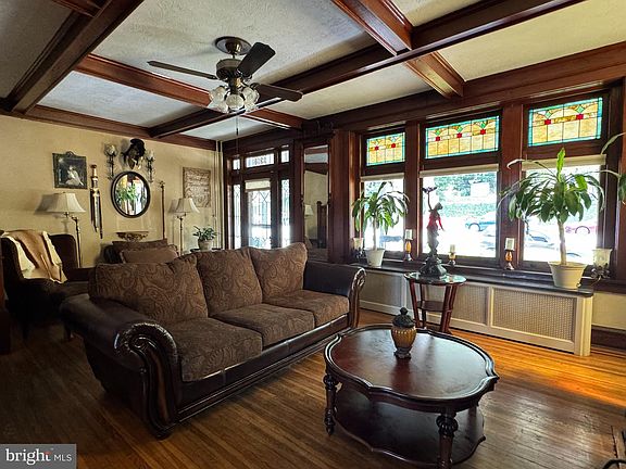 Come Tour the Gem of Hampden Heights and experience this unique and rare find which embraces traditional Old Reading Architecture with today's modern upgrades. This is an incredibly spacious Sundrenched home which showcases a beautiful large living room and fireplace, Dining area, 6 Bedrooms and 3.5 Baths. The main level boasts a beautiful eat-in kitchen, a wood burning fireplace, and original French doors. Upstairs, you'll find Large Bedrooms with the Master Bedroom with Full bathroom. Original bow windows in bedrooms, all conveniently connected to a hallway full bath. Throughout the home you can find original stained-glass windows, wood trims, and hardwood flooring. The basement expands your living options with three versatile areas, ideal for a living space, office space, or workout space. Connected to the basement is a 1 car garage which has been converted to a Movie Theater Room. Outside, enjoy a screened in balcony, a fully fenced yard for your privacy with a large driveway, and an upper and lower deck. Perfect for outdoor activities and entertaining. For additional storage, there is a storage room in the Basement as well as on the 3rd floor. This home also includes a brand-new roof with a warranty. This Historic home offers both space and style in a desirable location. Come View this Amazing home today !