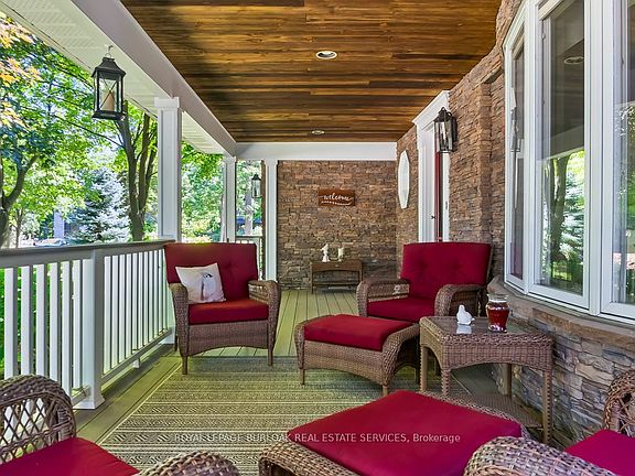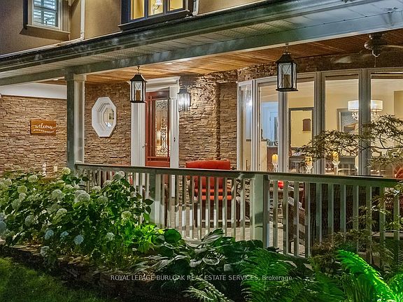Nestled on a quiet crescent in the highly sought-after Falgarwood neighbourhood, this rare property sits on a stunning 75x175 ft ravine lot w/ no rear neighbours, offering unmatched privacy & breathtaking views year-round. From the moment you arrive, the home's curb appeal impresses w/ its aggregate driveway, stone walkway, & inviting covered TimberTech front porch w/ overhead fan & lighting. Inside, you'll find large primary living areas featuring crown moulding throughout, 2 cozy gas fireplaces, & hardwood floors on the main level, creating a warm & elegant atmosphere. The chefs kitchen, recently painted white and fully expanded in 2015, features granite countertops, a custom window seat, bar, & pantry, & opens to a spacious back deck w/ a skylight overlooking the peaceful ravine, perfect for morning coffee or summer entertaining. This home has been meticulously updated over the years, including spa-like bathrooms with soaker tubs and glass showers, a fully finished basement w/ custom built-ins (2017), & a spectacular great room addition w/ a brand-new roof, soffits, & eaves (2024). Upstairs showcases engineered hardwood flooring, a skylight above the landing, & a private balcony in the primary suite, while 3 additional bedrooms feature soft, neutral carpeting. The backyard is a true sanctuary. Backing onto a lush, tree-filled ravine, it offers a level of privacy rarely found in Falgarwood. Professionally landscaped gardens w/ accent lighting, irrigation system & a soothing waterfall feature create a magical atmosphere, perfect for unwinding after a long day or hosting summer gatherings. W/ new fencing on both sides, this outdoor oasis is completely enclosed, offering peace of mind & a sense of seclusion. Located in the top-rated Iroquois Ridge School District, & minutes from parks, trails & convenient amenities, this home offers a rare blend of modern comfort & natural beauty.