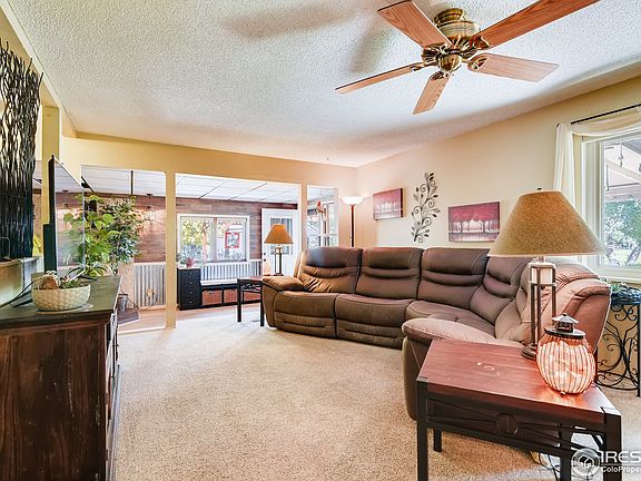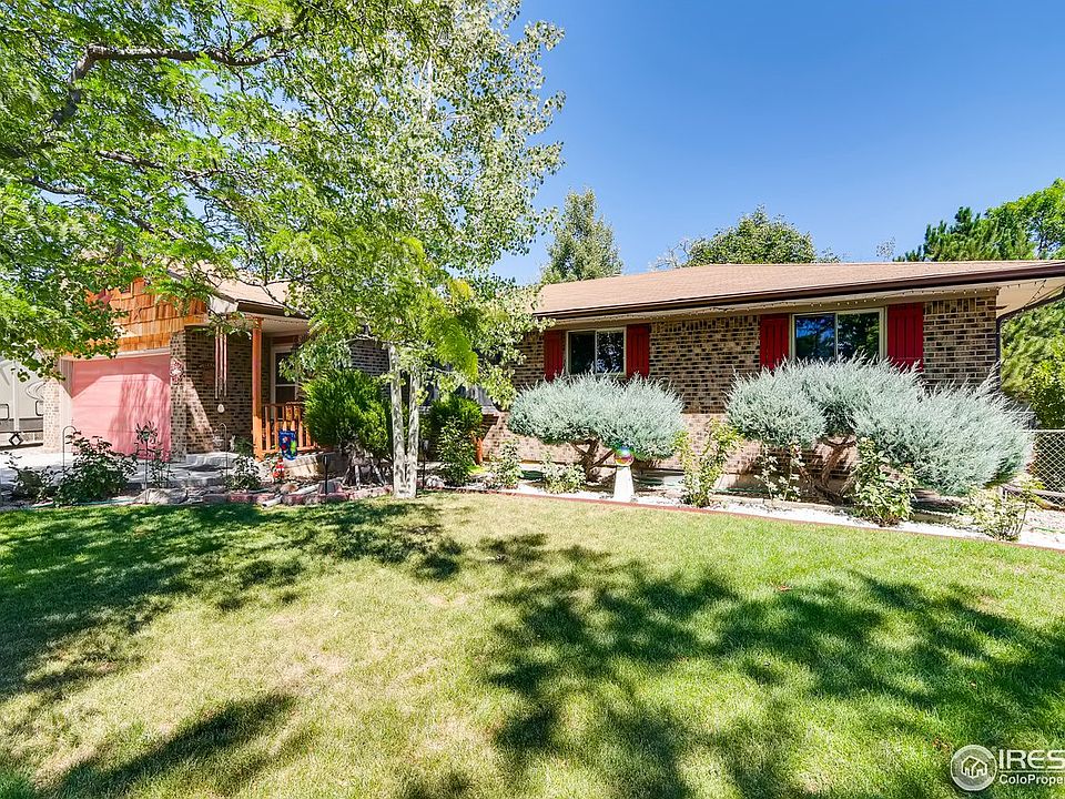 Sprawling brick ranch in SW Loveland with two master bedrooms with attached private bathrooms, two additional bedrooms, two large flex rooms in finished basement, air conditioning, vinyl windows, RV parking, fenced yard, beautiful outdoor living space and landscaping, with covered patio, pergola, fire pit, large garden, 18 X 14 storage shed, backs to large private greenbelt, all on a quiet cul-de-sac, conveniently located near shopping, schools and restaurants.