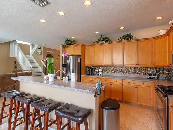 This lovely two-story pool home boasts over 3,000 sq ft with 3 bedrooms (the 4th bedroom is converted into a loft), 2.5 bathrooms, and a 2-car garage. The main floor features durable tile flooring throughout as well as an upgraded kitchen with stainless appliances, bar seating, and nook-breakfast area. The second floor has attractive wood-look flooring throughout and a large loft that currently serves as an office. The spacious master bedroom includes tray ceilings and an ensuite with his/hers vanities and separate shower/tub. Surrounded by well-manicured tropical landscaping, the beautifully designed backyard is complete with a large covered seating area and inground freeform pool and spa. 2020-07-17