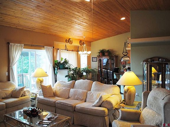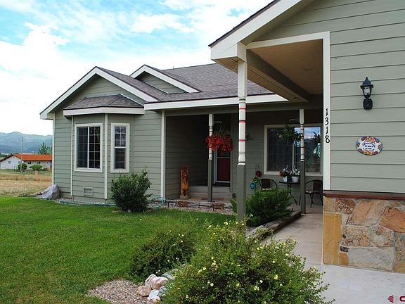 Mountain views and privacy in this immaculate home! This 3 car garage AND 4 bedroom home has been well maintained and features nice upgrades and clean finishes. All one level living with open space for entertaining. The kitchen features granite counters, clean and sleek black appliances, kitchen bar, neutral colored tile flooring, a breakfast nook, and nice shelves for display. The living room, which connects to the kitchen and formal dining boasts beautiful tongue and groove ceilings, a fantastic gas fireplace, and an overhead fan to help keep temperatures even. The master suite, which is separate from the other bedrooms for privacy, has access to the back deck and hot tub area, a walk in closet, and a spacious full bath. You'll find two spacious spare bedrooms at the other end of the home and share a nicely finished bathroom. The fourth bedroom is a huge bonus to this home, features a bay window, good sized closet; could be a bedroom, office, or an extra bonus room for activities. Enjoy the well manicured, beautiful gardens and yards on this home. The front yard comes with nice trees, flower beds, and a great covered front porch. The back deck and yard, with gazebo covered hot tub, is fantastic for afternoon BBQs and enjoying the privacy and views of the HDs. Tucked away in the backyard is a garden area that blooms with vegetables, flowers, and a sweet little water feature. Large 12x16 shed provides space for your tools and toys. Lastly, this home has a three car garage for all the cars and storage you need. One of the only 4 bedroom homes on the market in Bayfield!