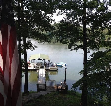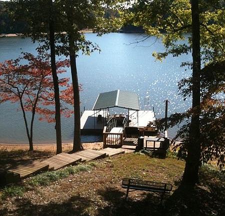 SPECTACULAR breath taking long range views on deep water!! EASY walk to DEEP water single slip composite dock! The dock is oversized and also has a boat lift with power and lights. 3/2, new flooring, open great/dining rm combo, galley style kitchen w/breakfast bar, white cabinetry & solid surface counter tops. The HUGE screened in porch w/2 sided decks overlooks the lake. This is the perfect lake home with easy access from Atlanta! The Community also has a dock, boat ramp, trailer parking area & large picnic pavilion. Possible quick closing. Annual $25 HOA Fee.