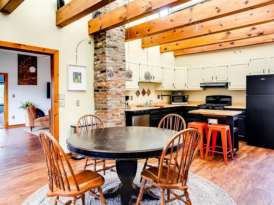 *NOTE: Tenants pay one rent price including all utilities, amenities, and a fully furnished house. This is a month to month rental. Interested and price out of your budget? Reach out and let's discuss!* - Sterilized Property - Sparkling clean and well-stocked! - Professionally managed - Centrally located in The Highlands - Minutes from local restaurants and nightlife - Very private, safe neighborhood - Parking pad for 2 cars - Great front porch and yard. - 4.8 Miles to Expo Center - 1.8 Miles to Convention Center/Downtown - Full kitchen, dining, and on-site laundry Located just off Lexington Road near Baxter Ave in the Phoenix Hill neighborhood of the popular Highlands, this unique property is set on a bluff with a view of the Downtown Louisville skyline in the distance. Uniquely situated in a historic residential setting, this listing boasts two individual spaces, which creates privacy for those traveling in groups. THE HOUSE: The house is a 2 Bedroom, 1.5 Bath house with a parking pad with space for 2 medium-sized vehicles. You will enter the house from the rear via an electronic keypad and enter into a small sunroom filled with light. From the sunroom, you will walk down a hallway with a full bathroom on the right. This is the only shower in the house. The hallway leads to the combination kitchen/dining area (seating for 4 + 2 barstools) with vaulted ceilings and exposed beams. Much of the original kitchen charm has been retained and thoughtfully painted while the appliances have all been updated. The back right corner of the kitchen houses the second bedroom with a comfortable full-size bed. The bedroom is small but not too small and features tons of closet space. Attached to the second bedroom is a full laundry suite with washer and dryer you are welcome to use. From the kitchen, you will enter the living room with comfortable seating for 6 on a sofa and 3 chairs and one of 2 TVs in the house featuring ROKU TV with the Spectrum App for watching live streaming TV. The sofa converts into a bed for an additional sleeping area. We provide linens and pillows for the sofa bed. There is a sliding glass door in the living room that lead to a brick paver patio with seating 6, fully covered by a wooden pergola to protect from the elements. From the living room, you will enter the Master Bedroom with Queen bed which features wall-to-wall carpet for comfortability. The bedroom has an attached 1/2 bath for privacy. The master bedroom has floor to ceiling built-in closets which are both practical and attractive. There is a TV directly across from the bed with live streaming TV via the Spectrum App. The front door of the house is in the Master Bedroom and leads to a private porch with additional views of the property and downtown skyline. With the draperies open you can even see the skyline from bed! Interested and price out of your budget? Reach out and let's discuss! This is a month to month rental. Tenants pay one rent price including all utilities, amenities, and a fully furnished house.